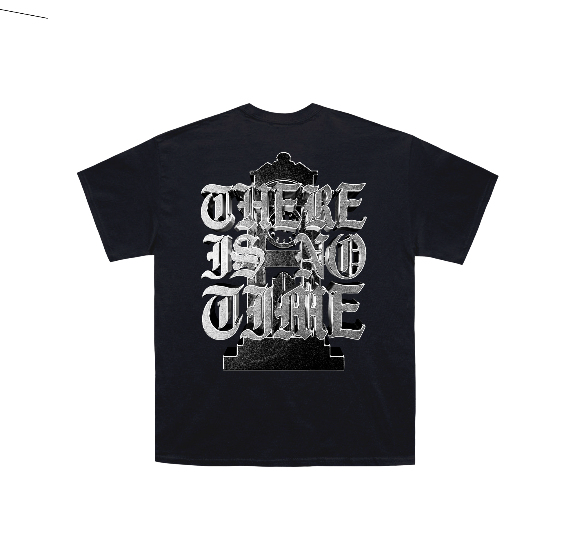 The back graphic showcases heavy gothic lettering layered over a detailed grandfather clock, framed with Christian symbolism — the cross and subtle faith-inspired accents — pressing the truth that our moments are not our own but entrusted to us. “Look carefully then how you walk, not as unwise but as wise, making the best use of the time, because the days are evil.” — Ephesians 5:15–16